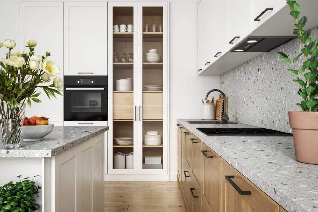 - Modern: Use glass cabinet doors in a modern kitchen design with clean lines and minimalistic hardware.