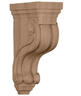 Traditional wood corbels are typically machine-carved or hand-carved and can compliment rustic or traditional kitchens with the attractive details.